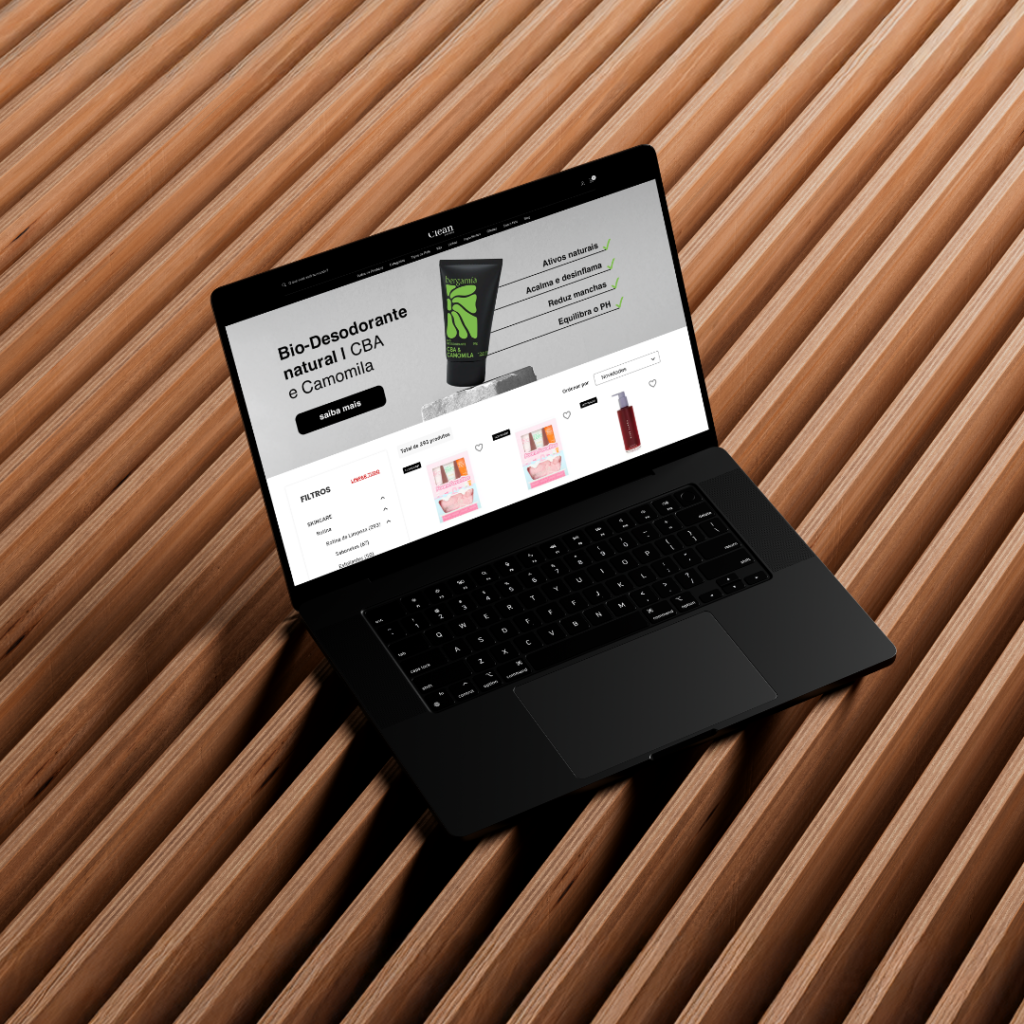 Este projeto foi desenvolvido para a Clean Cosmetics, uma loja especializada em cosméticos naturais, veganos e sustentáveis. A proposta foi criar um visual moderno, leve e elegante, evidenciando o compromisso com o bem-estar e o meio ambiente.